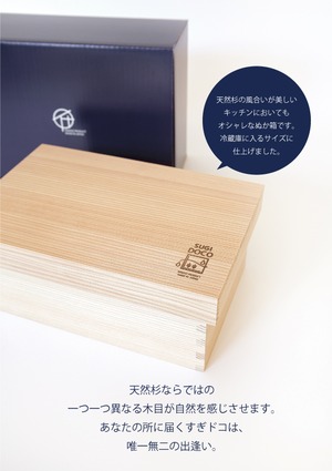 すぎドコは、九州産の天然杉を使った水抜きのいらない画期的ぬか箱です。