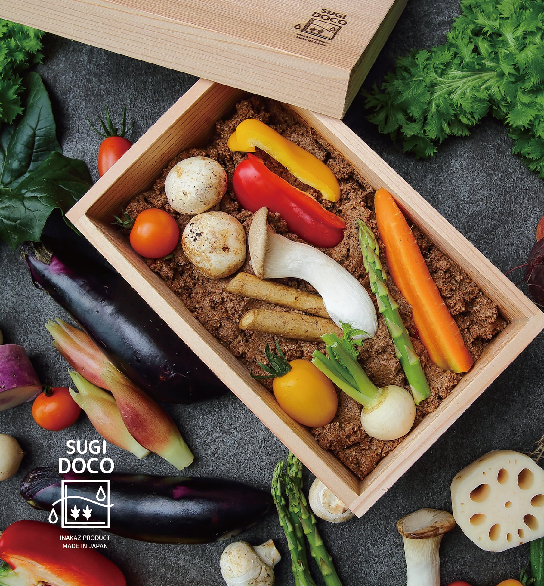SUGIDOCOは、九州産の天然杉を使った水抜きのいらない画期的ぬか箱です。